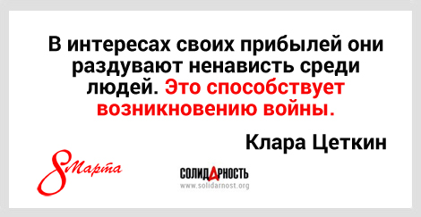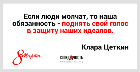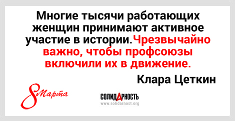 В 1910 году в Копенгагене состоялась II Международная конференция работающих женщин, на которой лидер женской группы социал-демократической партии Германии Клара Цеткин призвала всех женщин мира включиться в борьбу за право на достойный труд. Кроме того, Цеткин выдвинула идею ежегодно отмечать Международный день солидарности женщин в борьбе за экономическое, социальное и политическое равноправие.