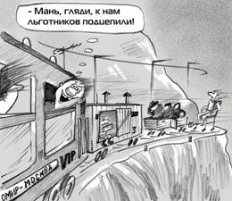 Наконец, топ-менеджер РЖД, как водится, пожаловался на безудержно растущее число “граждан, имеющих льготы и преимущества проезда”. Расплодившиеся в немереных количествах льготники подразделяются железнодорожниками на две группы: по профессиональной принадлежности (“милиционеры, военнослужащие, прокурорские работники, судьи, депутаты и др.”; о самих железнодорожниках ни слова) и по социальному статусу (“инвалиды, ветераны и пр.”). Согласно федеральному законодательству в РФ имеется 46 групп и категорий граждан, имеющих право бесплатного проезда. Кроме того, 9 группам и категориям граждан “предоставлено право проезда с 50%-ой скидкой”. Кто ж тогда в стране за проезд-то платит, если помимо льготников в стране существует огромное количество просто безбилетников - их “в стране, по экспертным оценкам, насчитывается около 55 млн. человек”?.. По данным РЖД в целом не платят либо оплачивают проезд не полностью 70 млн. человек.