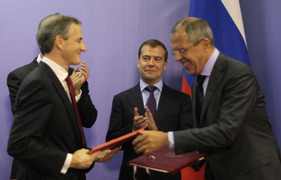 Договор между Россией и Норвегией о разграничении морских пространств и сотрудничестве в Баренцевом море и Северном Ледовитом океане завершил тянувшийся с 1970 года процесс делимитации спорного района площадью 175 тыс. кв. км (12% Баренцева моря). Более 80 тыс. кв км отходит Норвегии, и это наиболее перспективные для добычи участки. Устанавливается линия разграничения, которая делит спорный район "примерно на две равные части"; за каждой из сторон закрепляются суверенные права и юрисдикция в пределах установленной линии разграничения пространств. Определен "специальный район" площадью около 3,4 тыс. кв. км за пределами 200-мильной зоны "территориального моря РФ". Договор позволяет России осуществлять в спецрайоне суверенные права и юрисдикцию как для своей исключительной экономической зоны; определяет принципы сотрудничества в освоении месторождений углеводородов (пересекаемое линией разграничения месторождение может эксплуатироваться только как единое целое - вместе); определяет условия сотрудничества в области рыболовства, сохраняющие механизм совместного регулирования рыбного промысла в Баренцевом море.