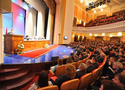 С докладом об итогах работы ЦК профсоюза за пять лет и об основных направлениях деятельности на 2011 - 2015 годы выступил лидер Роспрофжела Николай Никифоров.