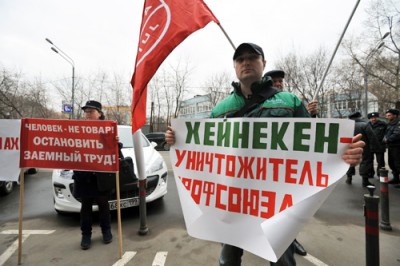Рабочие пивоварни Санкт-Петербургского филиала ООО "Объединенные пивоварни Хайнекен" организовали пикет у офиса российского представительства компании в Москве. 7 апреля они планировали передать генеральному директору компании в России Димитрову требования о заключении колдоговора. Основные претензии работников связаны с практикой заемного труда, а также напряженнейшим графиком работы и несоблюдением норм безопасности, которое уже принесло предприятию ряд трагических событий.