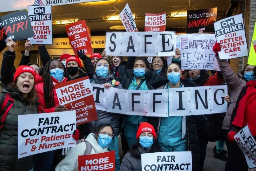 Почти 16 тысяч медсестер пяти больниц, принадлежащих трем медицинским центрам Нью-Йорка, вышли на пикеты протеста. Это стало крупнейшей профсоюзной акцией медработников в городе после 47-дневной забастовки 1984 года. “Солидарность” разбиралась, что же так возмутило нью-йоркских работниц шприца и капельницы.