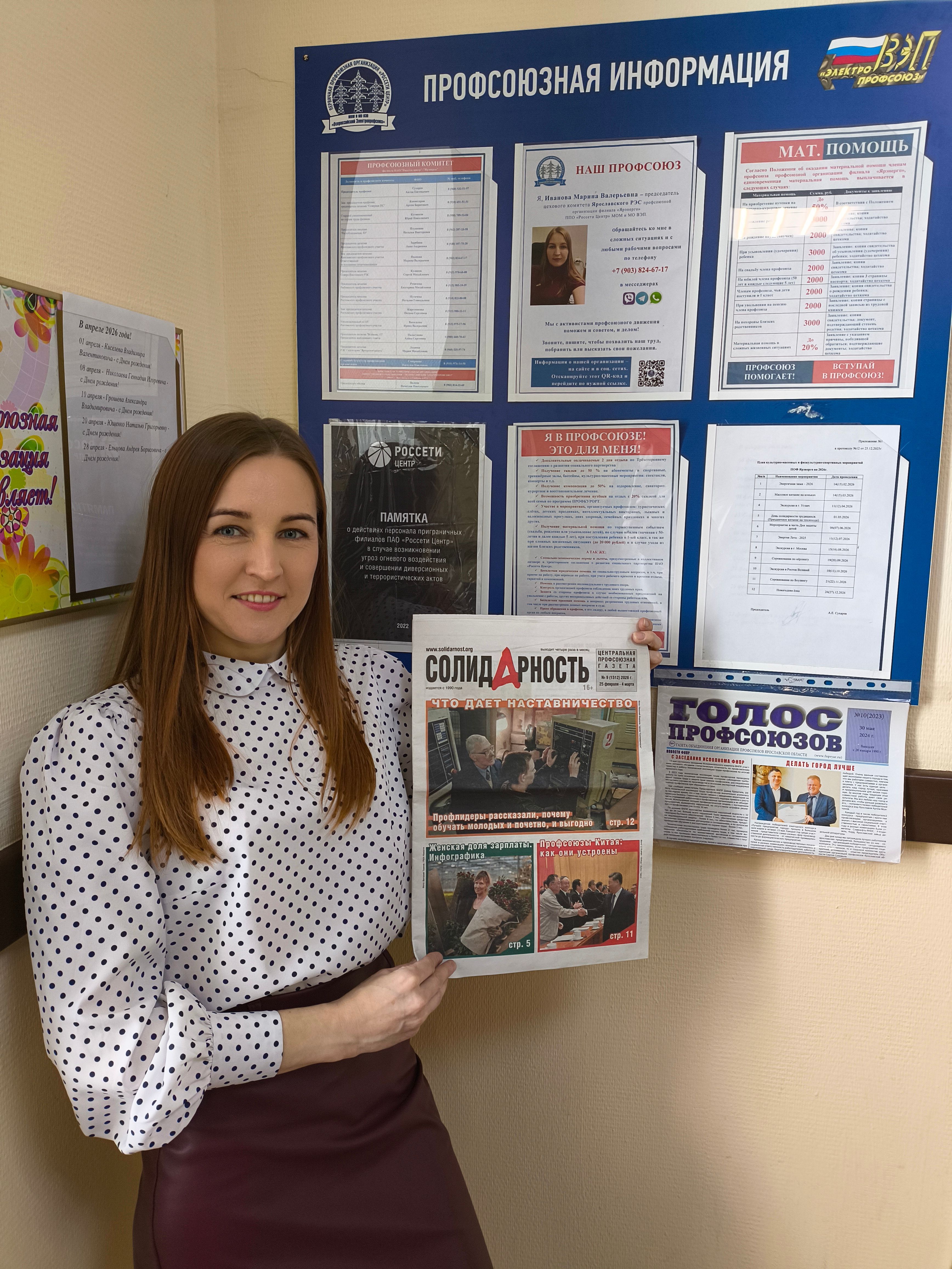 За мои успехи и личные достижения летом 2024 года меня назначили заместителем председателя цехкома Ярославского участка «Профсоюзной организации филиала «Ярэнерго».