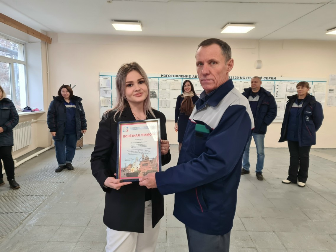 Также Почетная грамота обкома вручена председателю совета молодежи Алине Дувакиной за активное участие в жизни завода и профсоюзной организации, создание молодежной команды на заводе.