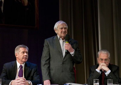 На фото - в президиуме: замминистра иностранных дел РФ Геннадий Гатилов, писатель Даниил Гранин, директор Эрмитажа Михаил Пиотровский