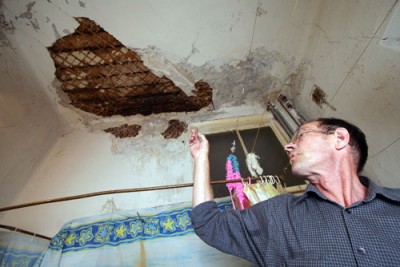 "Наш дом стремительно рушится снаружи и внутри. Между первым и вторым этажами образовалась дыра, сгнили углы, изгнила электропроводка. Каждый год из-за дырявой крыши образуется над входом в подъезд огромная сосулька, при сходе ее с крыши отрываются электропровода, и жители днями находятся без электроэнергии, а в доме много детей. В квартире № 8 провалился пол прямо в квартиру № 4, в результате между квартирами образовалась сквозная дыра. Несущие конструкции дома давно сгнили, стены превратились в труху, становится опасным проживание в доме. Ежемесячно все жильцы платят коммунальные платежи, в том числе за содержание дома и текущий ремонт, который ни разу не производился.