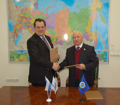На фото - генеральный директор РТРС Андрей Романченко и председатель Профсоюза работников связи России Анатолий Назейкин.