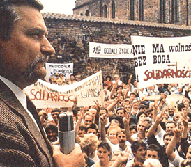 Далее, на стороне даже мирных революций должны быть случай и судьба. Валенса признает, что различные, просто бытовые обстоятельства вполне могли пустить ситуацию в стране и его личную судьбу совсем по другому руслу. И, конечно, не было бы никакой “Солидарности”, не стань поляк Кароль Войтыла в 1978 году Папой Иоанном Павлом II и не вдохновляй он затем бастующих своим Словом и личным примером. Так что, неоднократно заключал живая легенда Польши, - все от Бога.